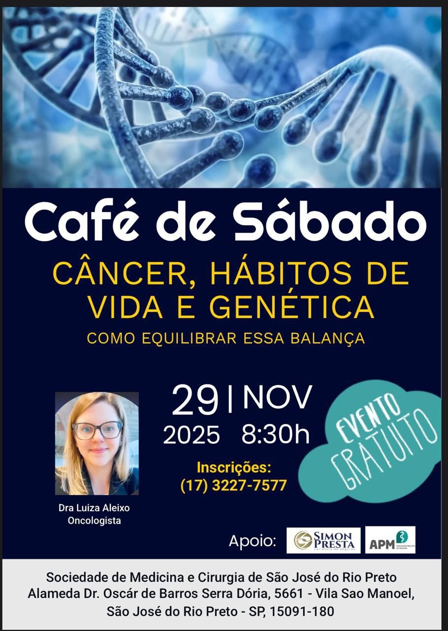Os hábitos diários das pessoas e a nossa genética podem influenciar o risco de desenvolver câncer. Este é o tema da palestra gratuita que a médica oncologista Luiza Aleixo Barros Leite Ferreira profere neste sábado, 29 de novembro, a partir das 8h30, na Sociedade de Medicina e Cirurgia de Rio Preto (SMC), em parceria com a Simon Presta Corretora de Seguros.