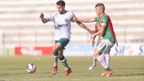 A primeira boa chegada foi do Rio Preto, logo aos cinco minutos. Alef Leite recebeu na direita e encontrou Marcos Papa na área. O camisa 9 dominou e chutou de canhota para fora.