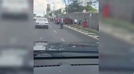 O impacto foi tão forte que o poste tombou. Uma equipe do Corpo de Bombeiros estive no local e constatou que o motorista não teve ferimentos.