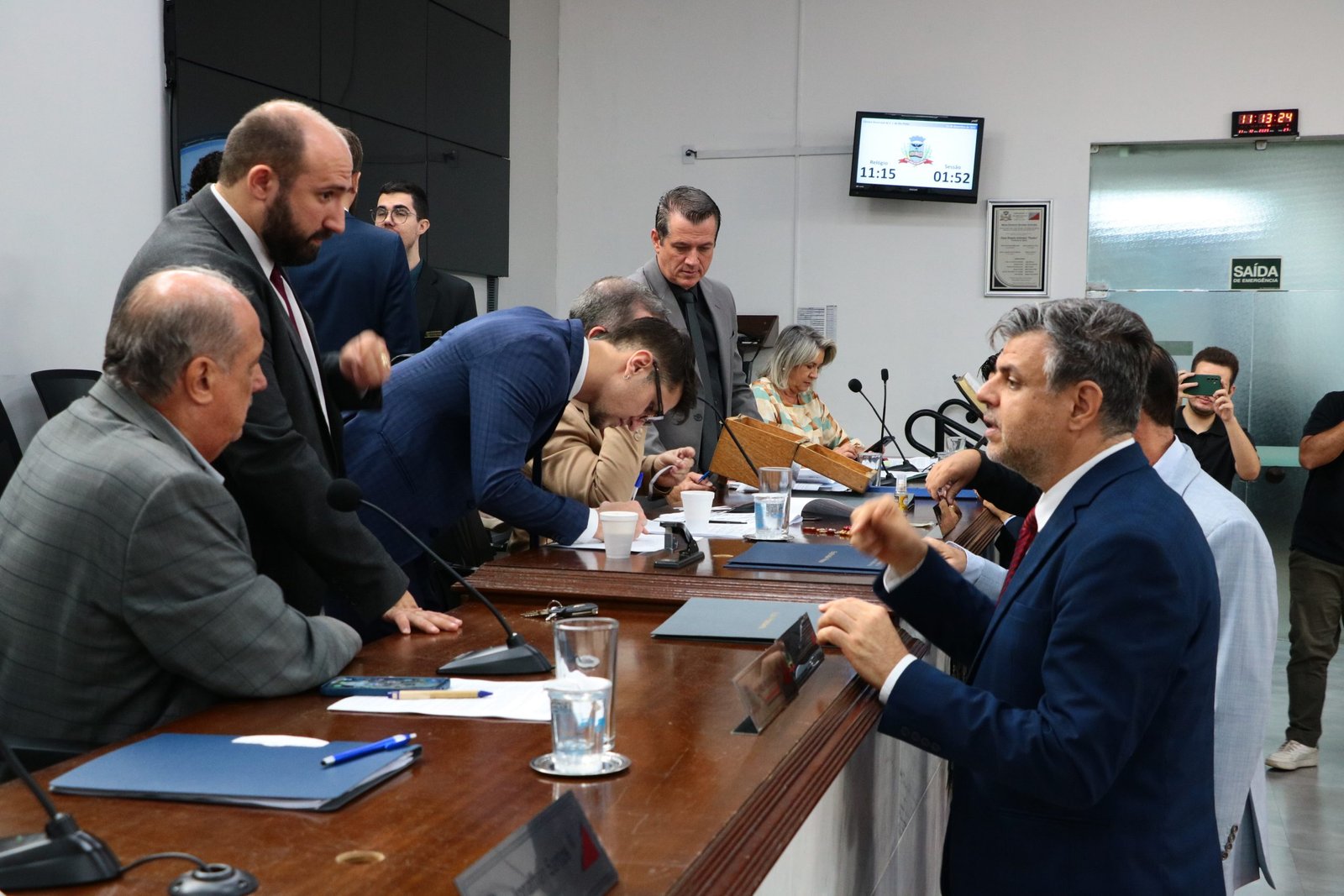 A pauta da sessão listava dois projetos de autoria do vereador Alexandre Montenegro (PL). Ambos tiveram a análise adiada após pedido de vista, por duas sessões, feito por Paulo Pauléra (Progressistas). A primeira matéria trata de autorização de embarque e desembarque de mulheres no transporte coletivo, em qualquer lugar, em período noturno (a partir das 20 horas). A segunda proposta institui a aplicação de multa para indivíduos que intencionalmente depredam bens públicos, instalações ou interrompem serviços no município.
