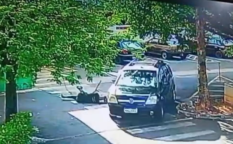 O momento do atropelamento foi registrado por câmeras de monitoramento do local, que está situado no bairro Jardim das Oliveiras. No vídeo, é possível ver que o funcionário tenta abordar os suspeitos, que o atropelam e saem em alta velocidade. Após o impacto, o vigilante cai no chão desacordado. A cena é forte, por isso o g1 optou por congelar a imagem.