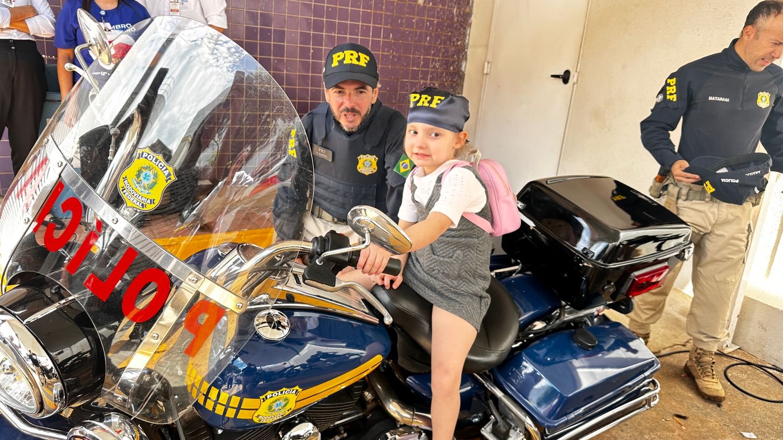 A ação teve como principal objetivo estimular confiança, coragem e alegria, reforçando o apoio emocional às crianças e às famílias que enfrentam a rotina de cuidados oncológicos. Como gesto simbólico de força e proteção, cada criança recebeu uma bandana personalizada com o logotipo da PRF, além de doces e balas distribuídos pelos policiais e voluntários.