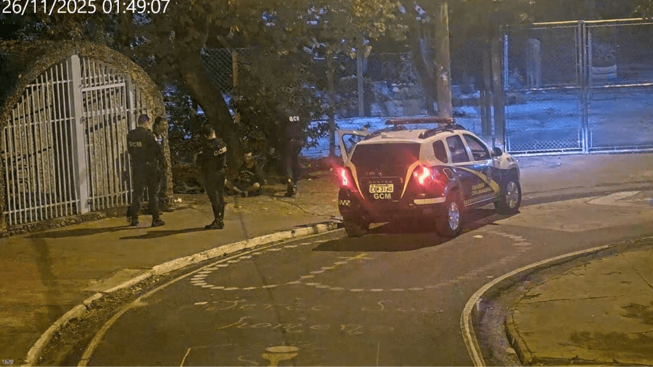 Durante a ronda intensificada, os guardas perceberam que as luzes da praça estavam apagadas e avistaram um homem agachado, tentando se ocultar, enquanto chamava outra pessoa.
