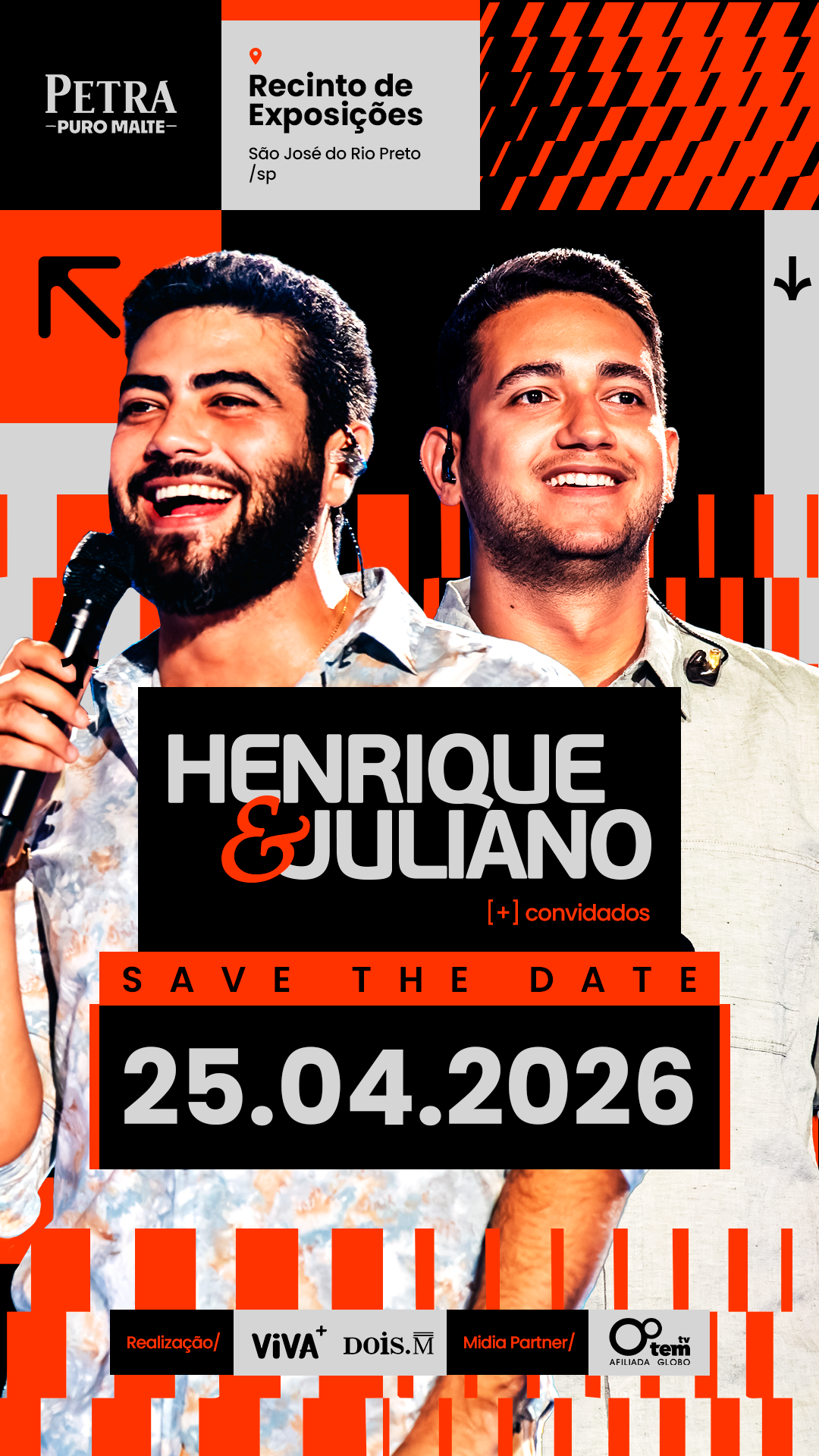 Três anos depois de lotar o Recinto de Exposições, Henrique & Juliano confirmam retorno a São José do Rio Preto.