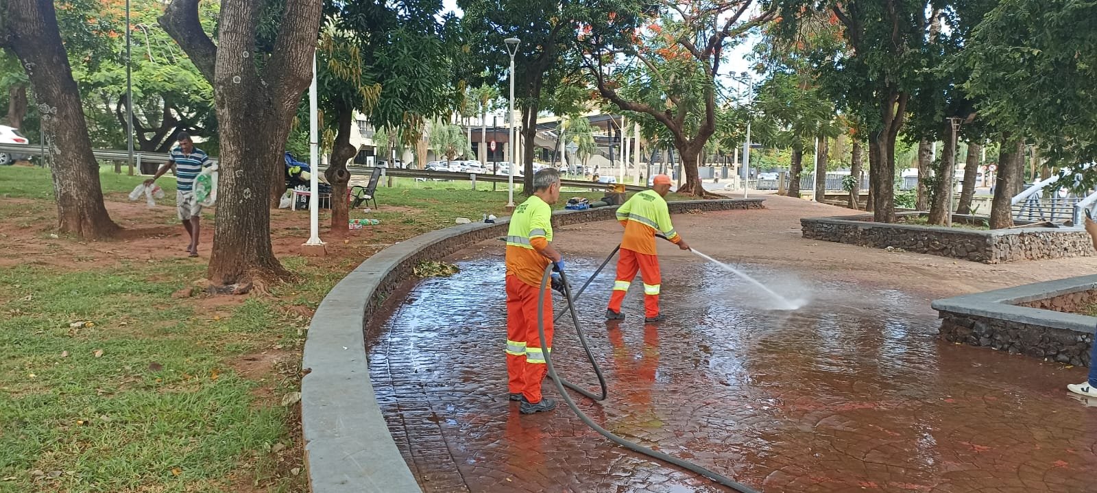 Após o encaminhamento, equipes do Meio Ambiente e da Empresa Municipal de Urbanismo (Emurb) realizaram a limpeza no local, lavando as vias, e a poda de árvores.