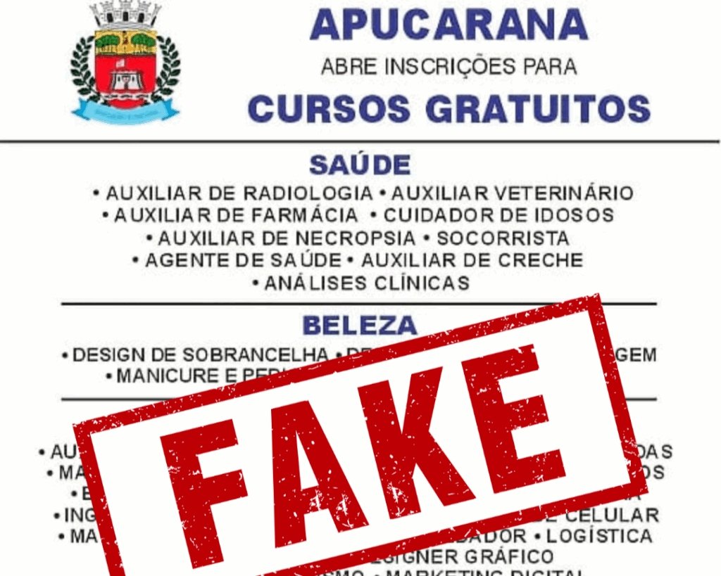 A Prefeitura de Apucarana, no Paraná, emitiu um alerta urgente à população sobre a disseminação de notícias falsas nas redes sociais. Golpistas estão utilizando indevidamente o nome da administração municipal para promover a oferta de cursos.