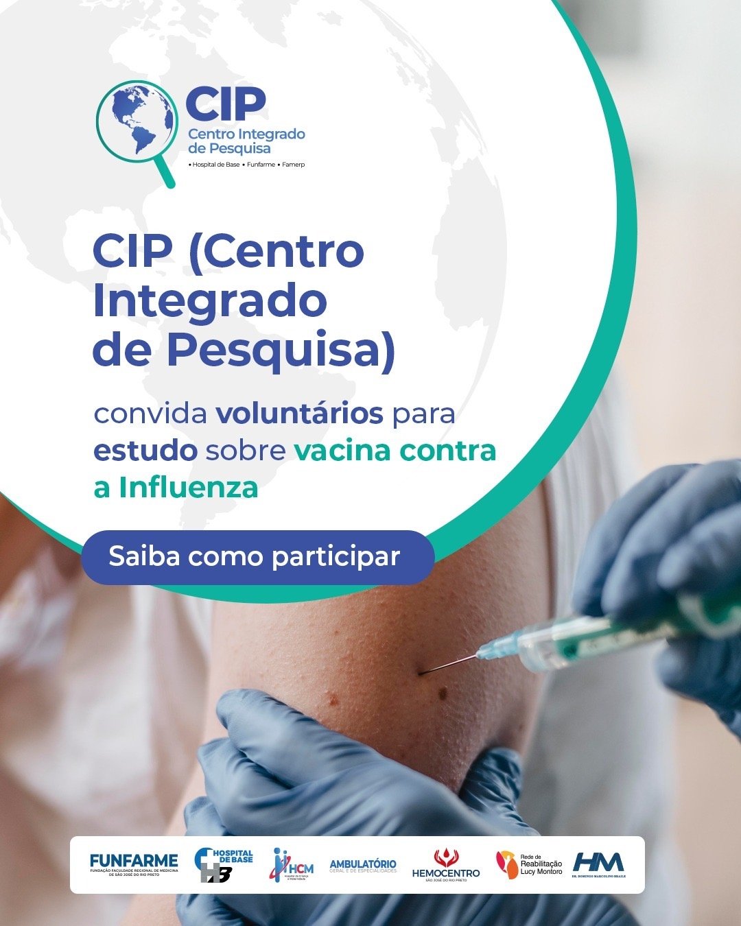 O Hospital de Base (HB), por meio do seu Centro Integrado de Pesquisas (CIP), abre as inscrições para voluntários do estudo da vacina contra a Influenza. Este é um estudo de fase III e após elegibilidade no estudo, os voluntários serão acompanhados por 6 meses no CIP.