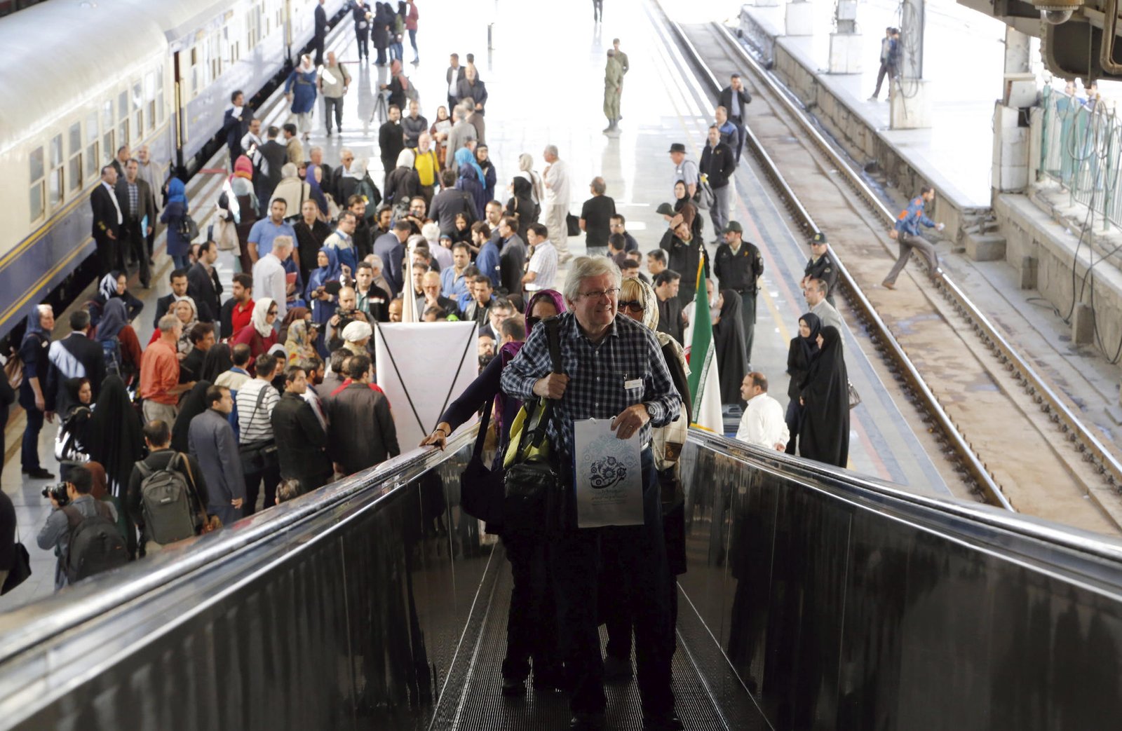 Passageiros em estação de trem em Teerã, capital iraniana (Foto: ABEDIN TAHERKENAREH/EFE/EPA)