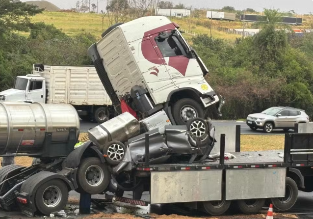 O acidente envolveu quatro veículos, sendo o carro e três carretas. Os motoristas das três carretas não ficaram feridos. Eles fizeram o teste do bafômetro, que não constatou embriaguez.