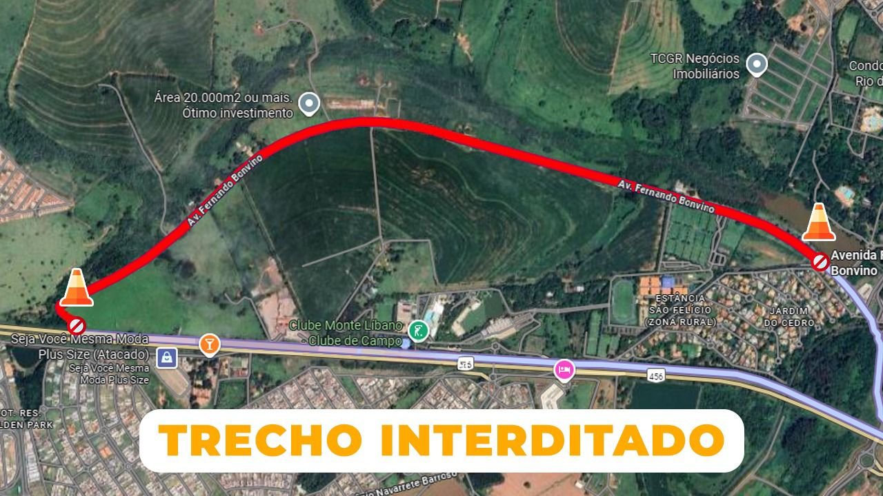 A Secretaria de Trânsito de Rio Preto interditará de 8 a 10 de setembro, a avenida marginal Fernando Bonvino. Durante o período, o tráfego estará liberado exclusivamente para acesso aos Clubes Monte Líbano e Palestra, pelas entradas laterais.