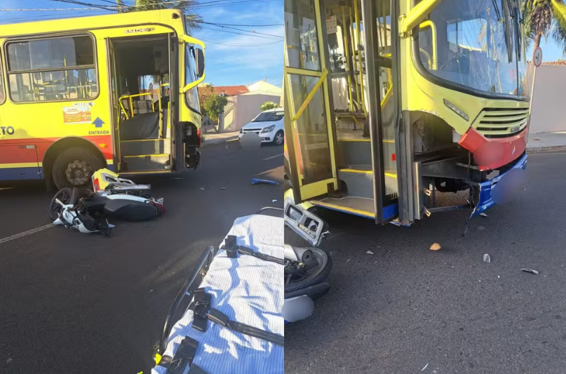 Uma motociclista de 37 anos ficou ferida em um acidente com um ônibus de transporte coletivo na manhã desta quarta-feira (3), no bairro Solo Sagrado, em São José do Rio Preto (SP).