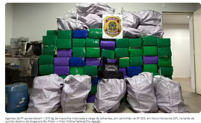 Quase duas toneladas de maconha foram apreendidas pela Polícia Federal em um caminhão em Novo Horizonte (SP), na tarde desta quinta-feira (23). Segundo a corporação, a droga tinha como destino São José do Rio Preto.