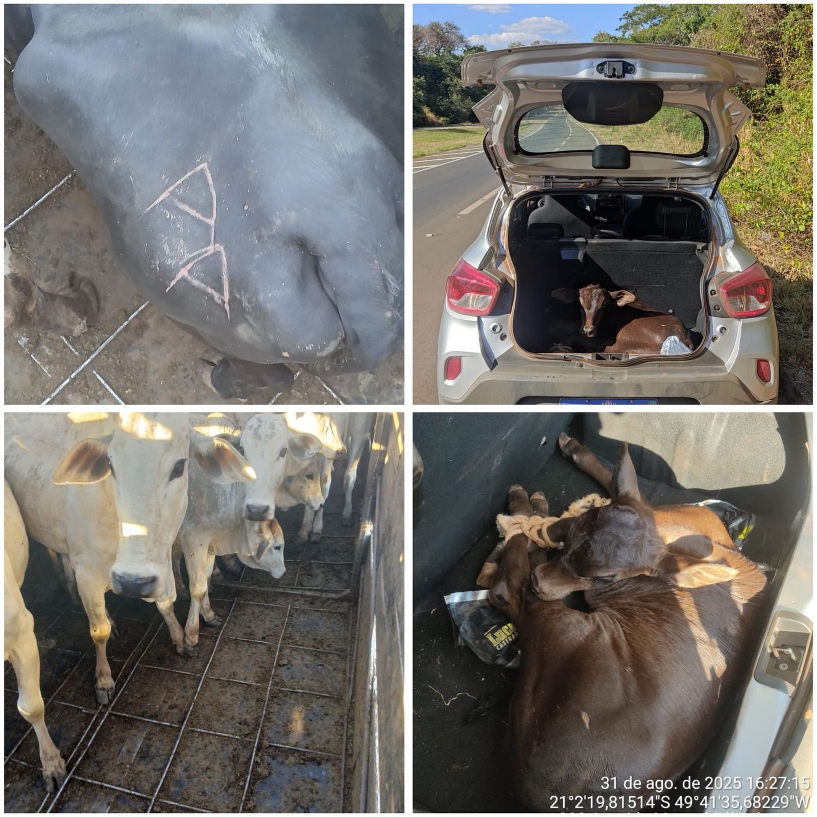 Um bezerro furtado foi encontrado no porta-malas de um carro em José Bonifácio (SP), no domingo (31). No total, 46 animais foram apreendidos durante ação conjunta entre a Polícia Civil e a Polícia Militar Ambiental.