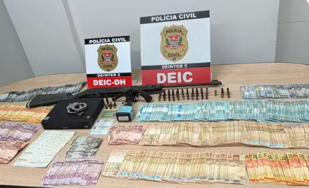 A Polícia Civil apreendeu cerca de R$ 58 mil em espécie durante o cumprimento de dois mandados em uma operação contra o desarmamento, nesta segunda-feira (9), em São José do Rio Preto (SP).