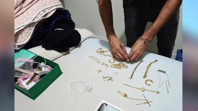 Na ocasião, apreenderam joias e semijoias que foram reconhecidas pela vítima, além de drogas, resultando na prisão em flagrante de um dos envolvidos.