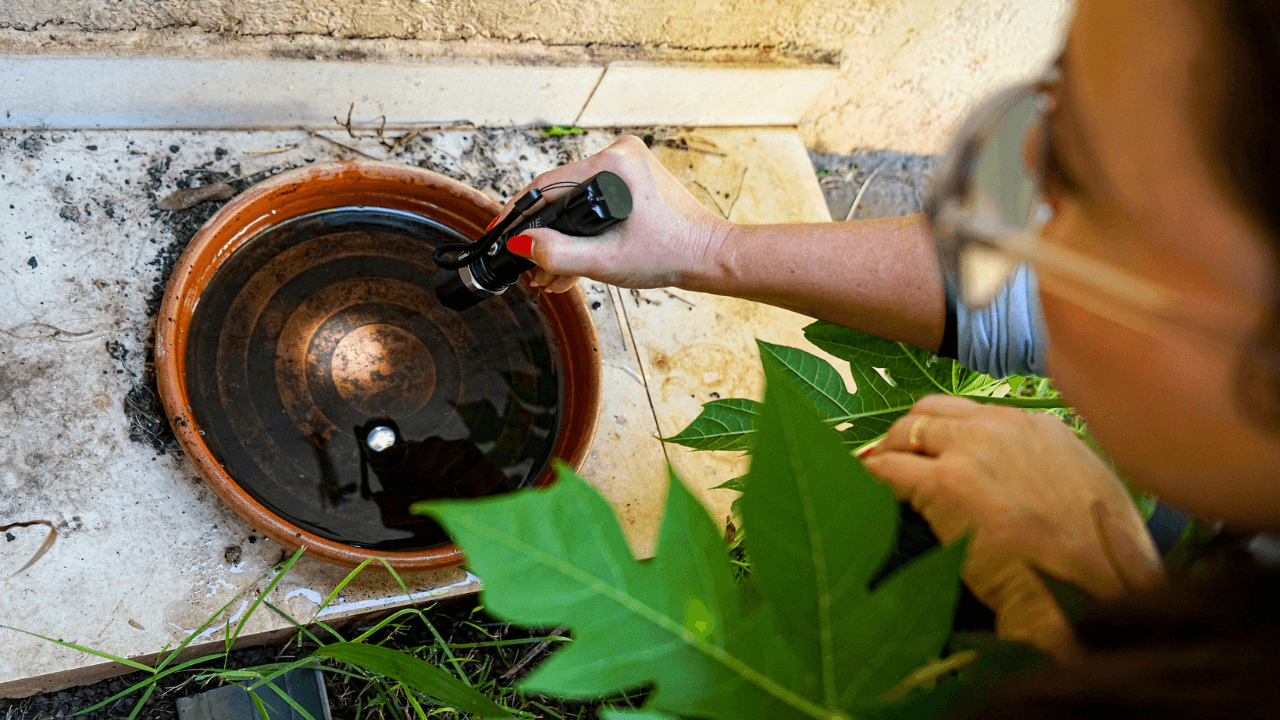 Nas visitas, os profissionais reforçam a importância da vistoria semanal das residências, com a limpeza ou descarte adequado de recipientes que possam acumular água, como latas, garrafas, tampas, pneus e bebedouros de animais — ambientes favoráveis à proliferação do mosquito. Caso sejam encontradas larvas, os agentes realizam a limpeza do recipiente ou providenciam seu descarte.