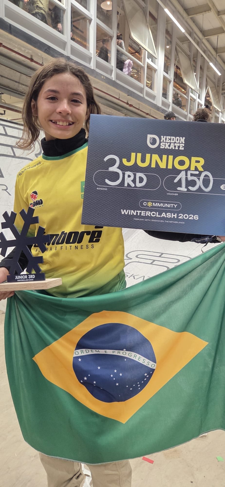 A atleta rio-pretense Joana Caroline Tavares Melo, de 12 anos, conquistou neste sábado (28) o terceiro lugar na categoria Júnior do Winterclash, considerado o maior campeonato de patins street do mundo, realizado em Eindhoven, na Holanda.