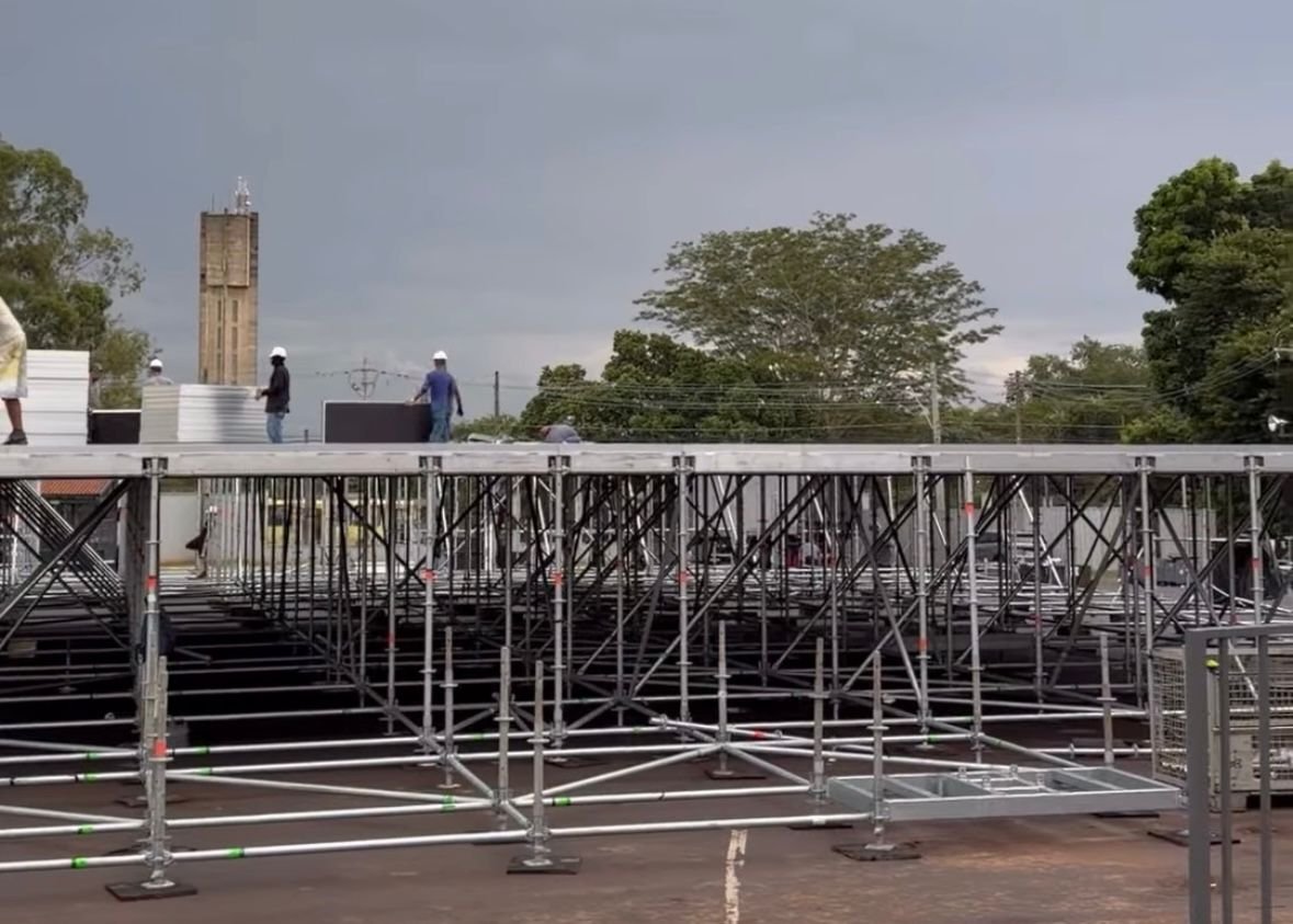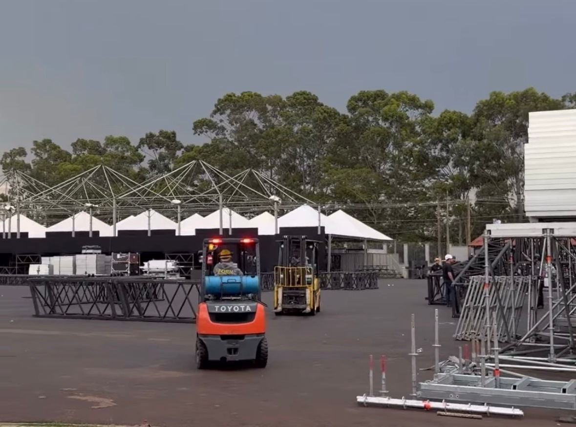 A estrutura impressiona: o palco, de origem alemã, ultrapassa 100 toneladas e será acompanhado por mais de 450 metros quadrados de painéis de LED. Mais de 30 mil ingressos já foram vendidos, atraindo público de diversas cidades e movimentando a economia local, com alta demanda em hotéis, restaurantes e serviços. Atualmente, cerca de 300 profissionais trabalham na montagem, número que deve ultrapassar duas mil pessoas no dia do evento, entre equipes técnicas, produção, segurança e limpeza.