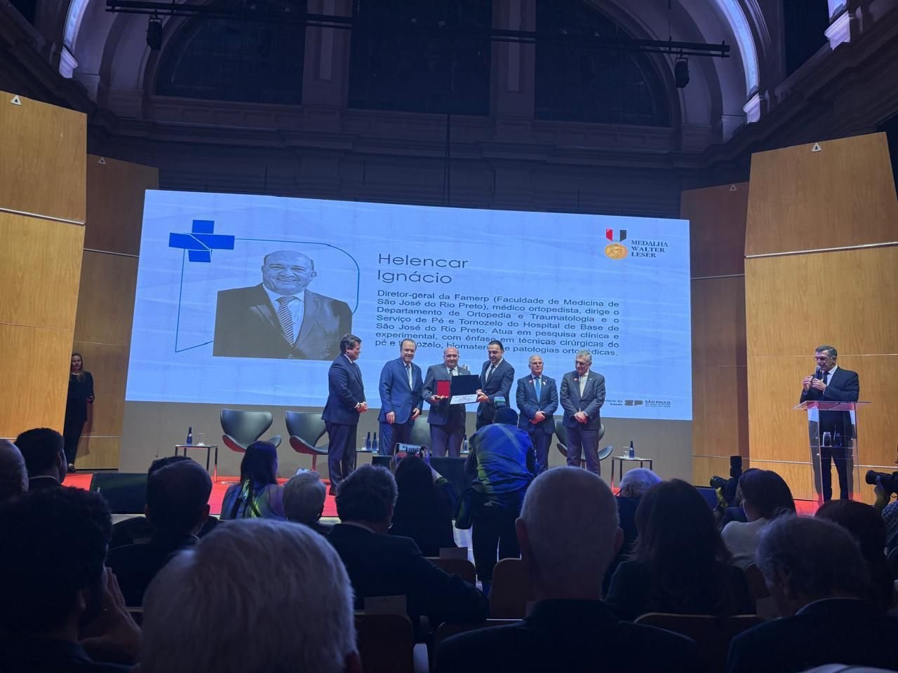 Entre os homenageados esteve o diretor geral da Famerp, Prof. Dr. Helencar Ignácio, que destacou o significado institucional da condecoração. Segundo ele, a medalha simboliza o esforço coletivo que sustenta a Famerp e a consolidação de um modelo de ensino e gestão baseado na integração entre ciência, formação profissional e compromisso com a população.