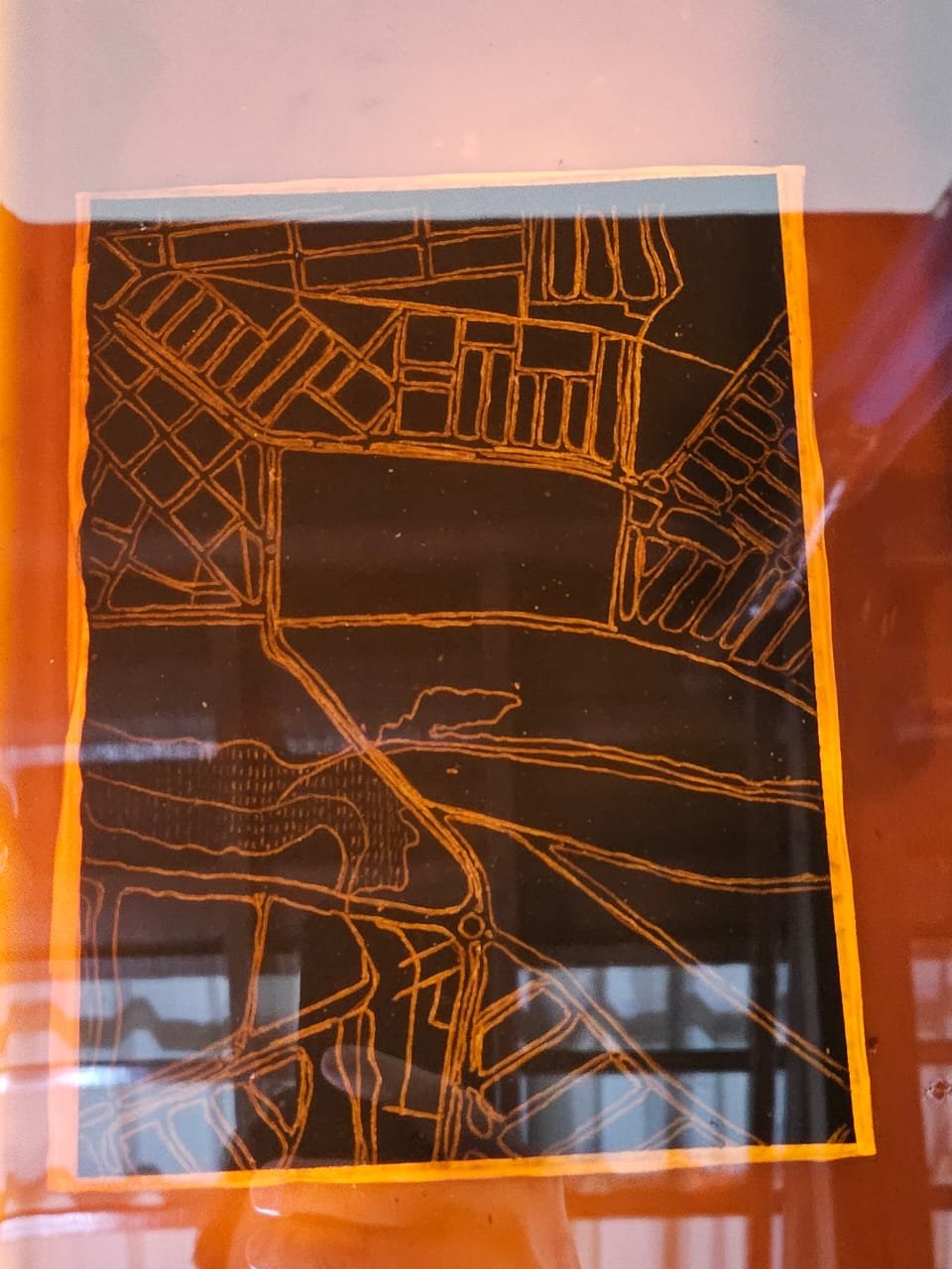 A partir de aplicações têxteis criadas manualmente sobre gravuras e tecidos, foram representados “mapas hídricos” do estado de São Paulo e de São José do Rio Preto, em dimensões bastante reduzidas, desenhados com fios finíssimos e tramas tão delicadas quanto resistentes, poeticamente representando os cursos hidrográficos. Com a mistura de técnicas e seus significados, a exposição convida a refletir sobre a relação que existe entre o curso dos rios – suas formas, fluidez e força – e o trabalho manual nas mais diversas esferas da vida humana.