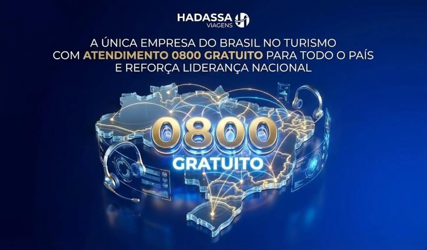 A HADASSA VIAGENS MAIS UMA VEZ SAI NA FRENTE E REFORÇA SUA POSIÇÃO DE PROTAGONISMO NO TURISMO BRASILEIRO AO IMPLEMENTAR UM DIFERENCIAL QUE ELEVA O PADRÃO DE ATENDIMENTO NO SETOR: UM CANAL 0800 DISPONÍVEL 24 HORAS POR DIA, 7 DIAS POR SEMANA.