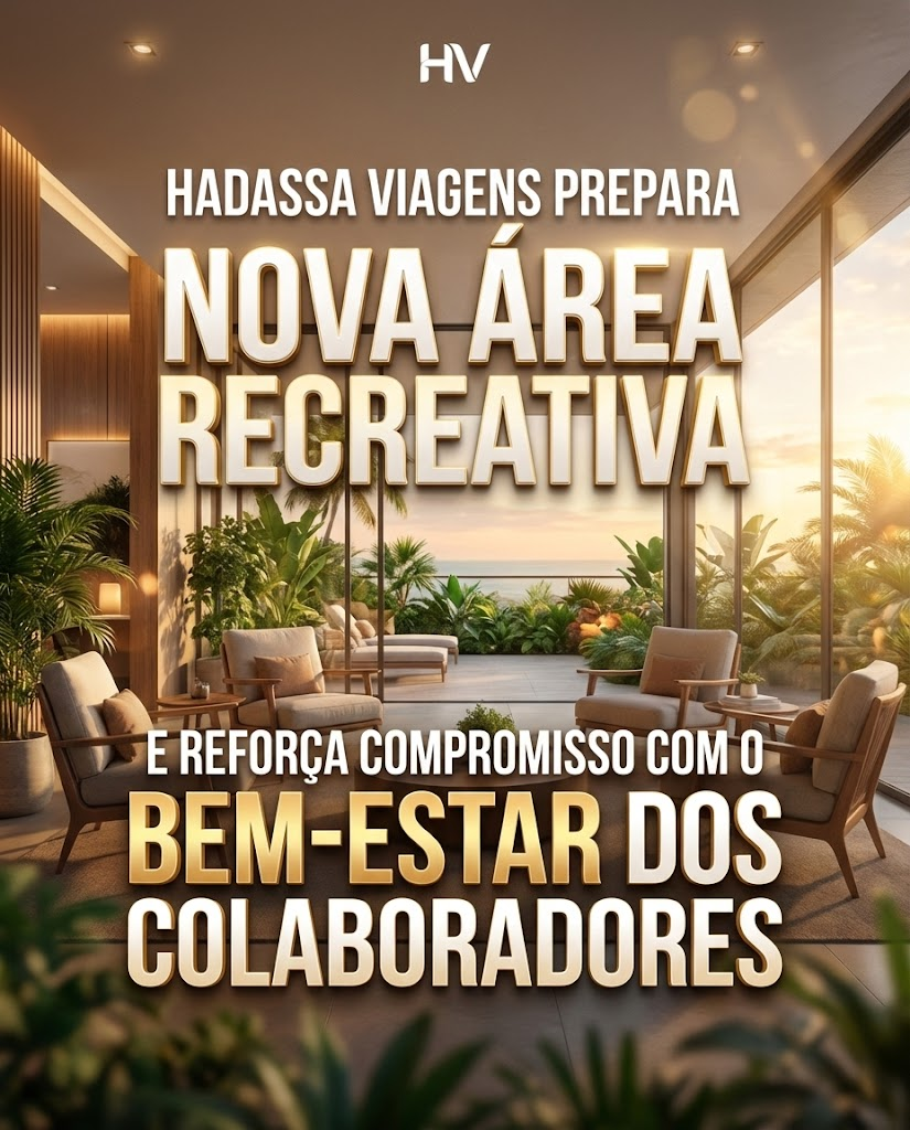 A HADASSA VIAGENS SEGUE INVESTINDO NÃO APENAS EM EXPANSÃO ESTRATÉGICA, MAS TAMBÉM NA QUALIDADE DO AMBIENTE CORPORATIVO. A EMPRESA ESTÁ PREPARANDO UMA NOVA ÁREA RECREATIVA EM SUA SEDE ADMINISTRATIVA, UM ESPAÇO MODERNO E PLANEJADO PARA PROPORCIONAR MAIS CONFORTO, INTEGRAÇÃO E PRODUTIVIDADE AOS SEUS COLABORADORES.