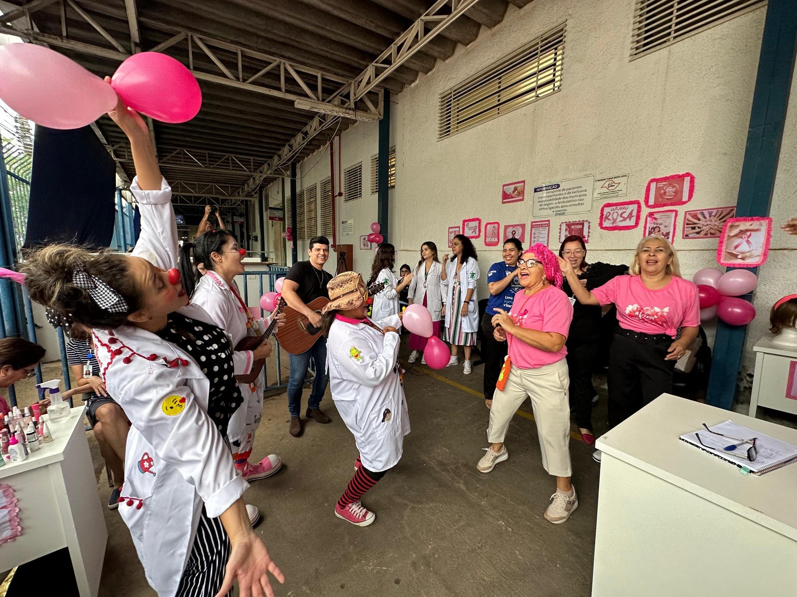 Ao longo da manhã pacientes e ex-pacientes do Instituto do Câncer do HB deram depoimentos de conscientização sobre a importância de obter um diagnóstico precoce de câncer de mama. As mais de 100 participantes puderam ainda se deliciar com pipoca, mini cachorro-quente e refrigerante servidos no local, em meio a brincadeiras com palhaços da ONG Sementes de Alegria e música com o cantor sertanejo Thiago Dias.