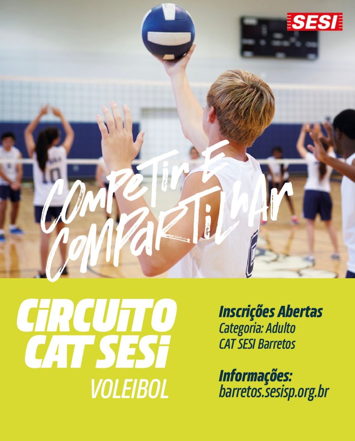 No mês de novembro, o SESI Barretos promove o Circuito CAT SESI de Voleibol. A disputa será na categoria Adulto Misto, destinada a participantes com 18 anos ou mais.