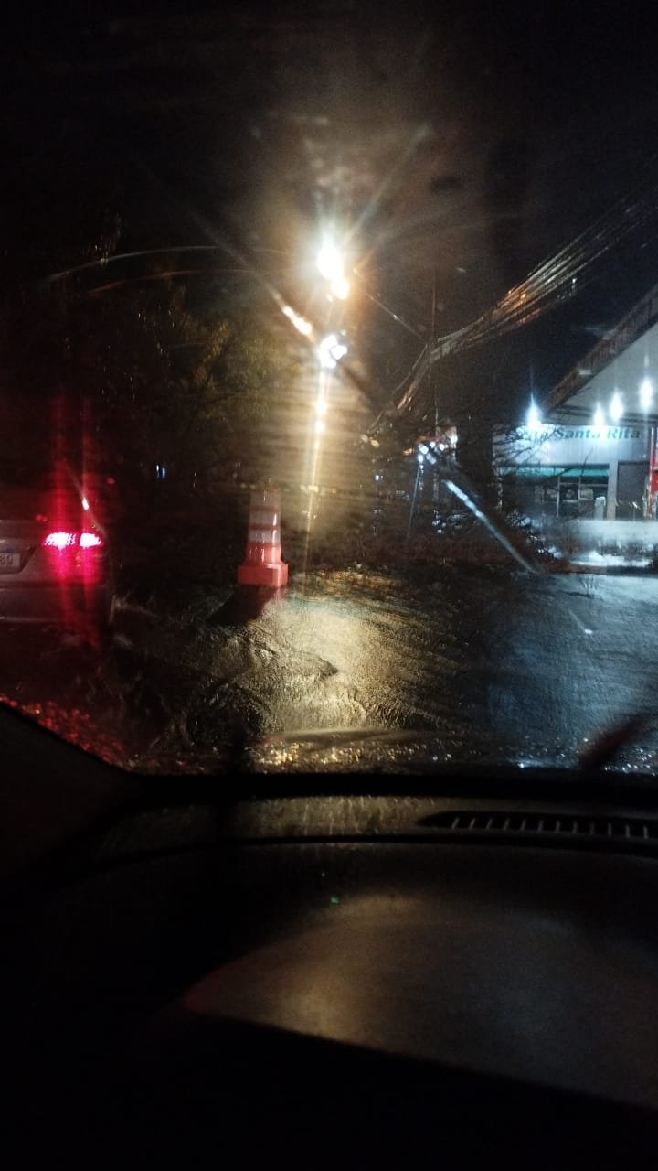 Motoristas ficaram ilhados na avenida Philadelpho Manoel G. Netto, dezenas de árvores não suportaram a terra encharcada e cederam.